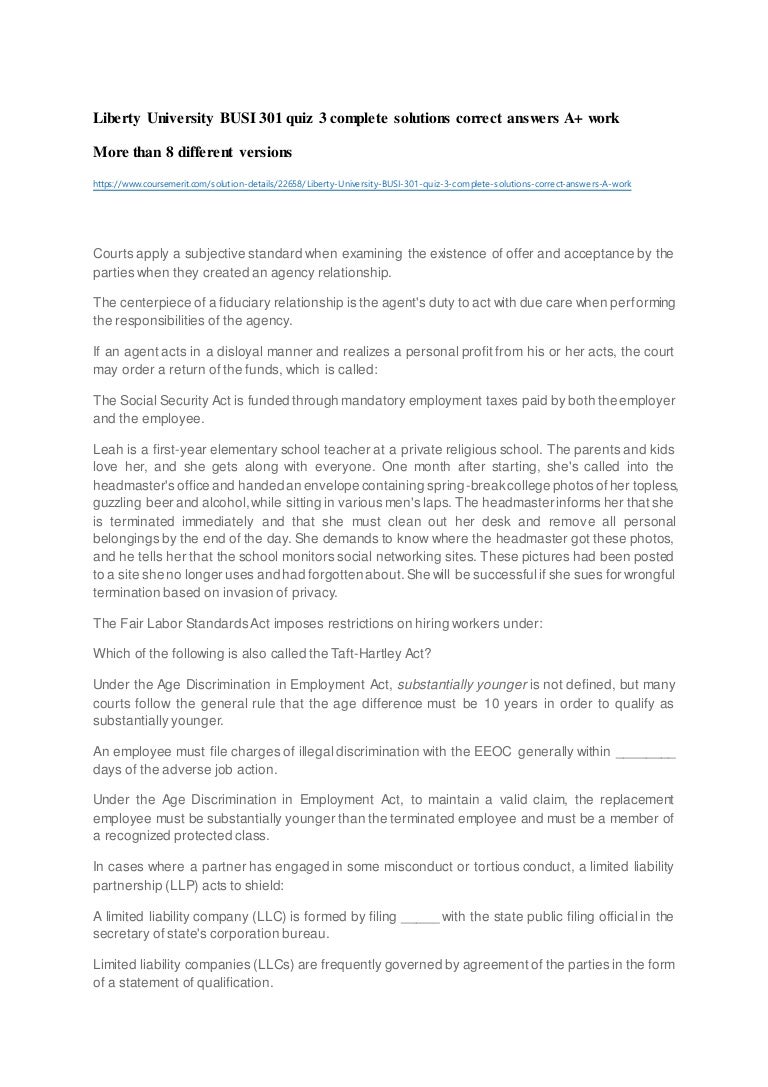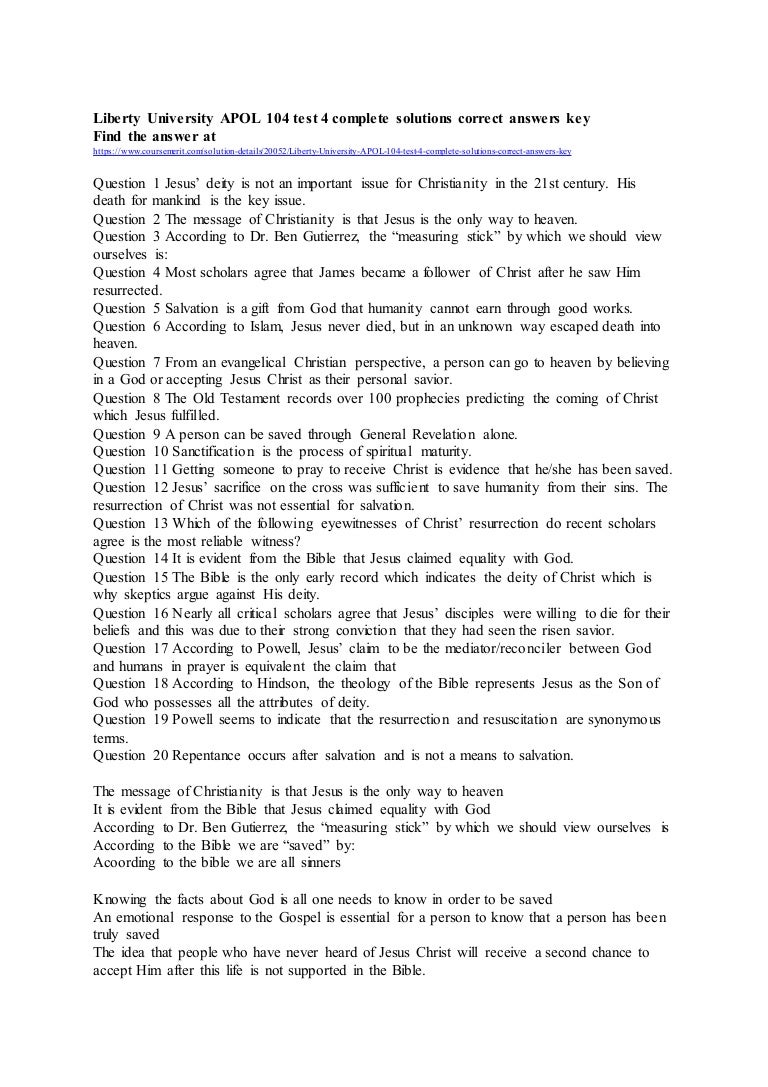 Liberty university busi 301 quiz 2 complete solutions correct answers…. Liberty university apol 104 test 4 complete solutions correct answers…. Complete apol correct liberty quiz university answer solution key slideshare. Biol correct liberty quiz answers solutions complete university key slideshare