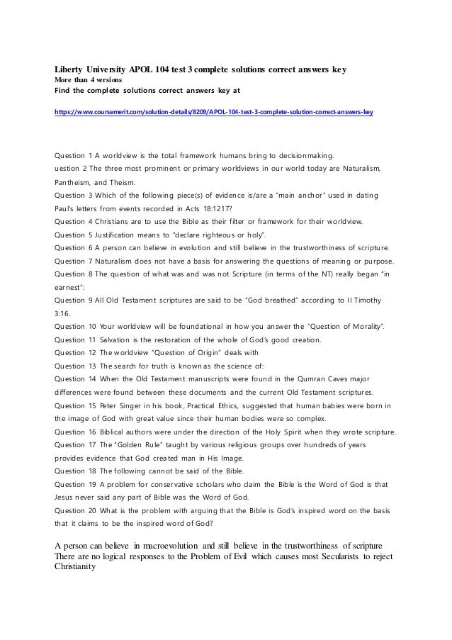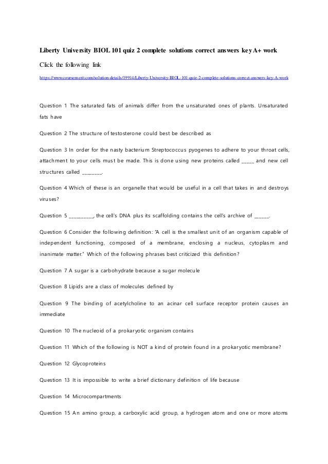 Biol correct liberty quiz answers solutions complete university key slideshare. Liberty university apol 104 test 4 complete solutions correct answers…. Liberty university econ 213 quiz 3 complete solutions correct answers…